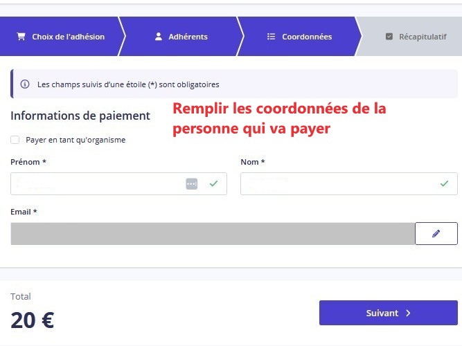 Si vous ne le souhaitez pas, décochez la case de soutien pour indiquer la valeur 0 € (voir plus bas conseils pour payer par CB)